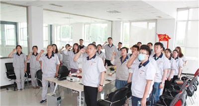 在公司黨建學(xué)習(xí)園地,支部書記徐家林同志帶領(lǐng)全體黨員重溫入黨誓詞。大家佩戴黨員徽章,面對黨旗,莊嚴(yán)宣誓,恪守黨員承諾,堅(jiān)定共產(chǎn)主義信仰。