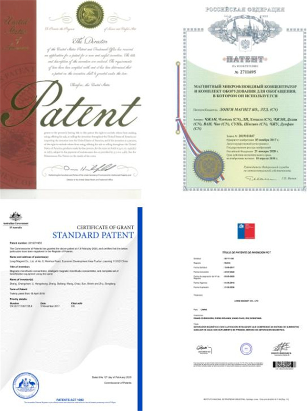 近日,隆基電磁磁懸浮精選機成功獲得美國專利授權,這是該設備繼智力、澳大利亞、俄羅斯后獲得的第4項國際專利。